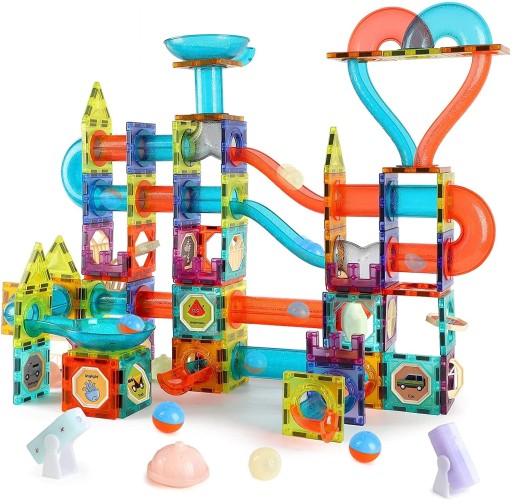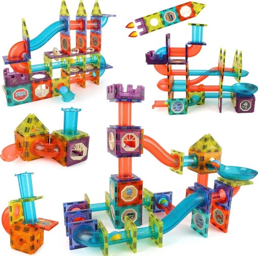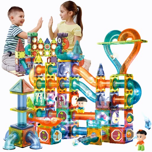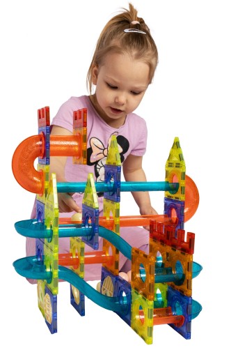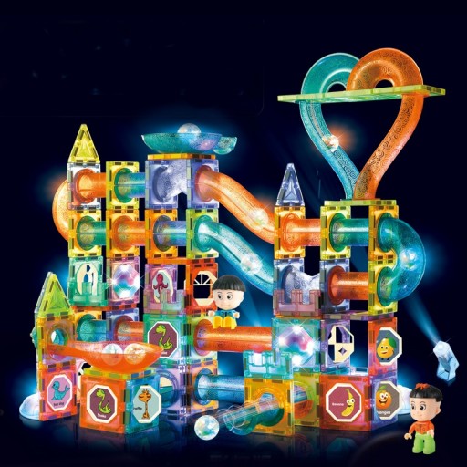 ŚWIECĄCY MAGNETYCZNY TOR KULKOWY / KULODROM - KLOCKI KONSTRUKCYJNE, ZESTAW XXL 202 elementy