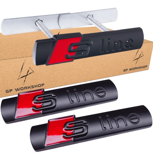 Emblemat do AUDI S-LINE ZESTAW 2x naklejka emblemat grilla - czarny mat 3D