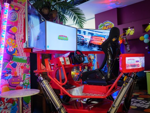 WITAM, MAM DO SPRZEDANIA SYMULATOR WYŚCIGÓW SAMOCHODOWYCH CRAZY RACING ,AUTOMAT UŻYWANY ,STAN BARDZO DOBRY,PODCZAS GRY SYMULATOR PORUSZA SIĘ NA SIŁOWNIKACH.WRZUTNK