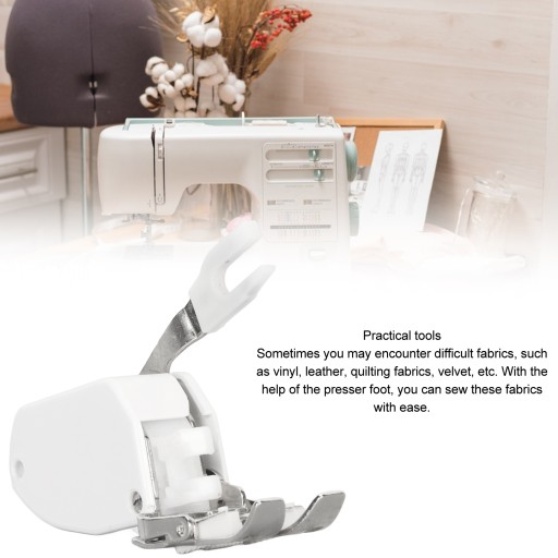 4. PRAKTYCZNE NARZĘDZIE: Czasami możesz napotkać trudne do szycia tkaniny, takie jak winyl, skóra, tkaniny do pikowania, aksamit itp. Za pomocą zsynchronizowanej stopki możesz atwo szyć te tkaniny.