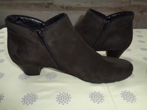 Buty marki GABOR ciemny brąz , skóra zamszowa . Rozmiar 40 na bucie 6,5 wkładka 26 cm . Zapinane na zameczek. Ponad czasowa elegancja , wspaniałe jakościowo , stan BDB+
