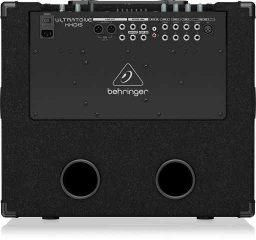 BEHRINGER ULTRATONE KXD15 - Combo klawiszowe. 4-kanały, oryginalny głośnik 15" firmy Turbosound. Multiefekt z procesorem efektów KLARK TEKNIK oraz z systemem wykrywania sprzężeń FBQ. Moc 600 W