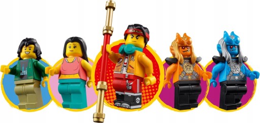 - Kolekcjonerska zabawka zawiera pięć minifigurek: Monkie Kida ze Złotym Kosturem, Gold Horn Demona i Silver Horn Demona z tykwowymi broniami, a także Wanga i Chena z akcesoriami, które podsuną małym bohaterom pomysły na zabawę.