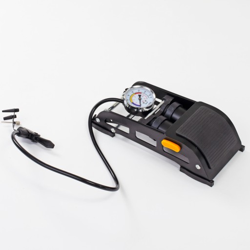 АВТОМОБИЛЬНЫЙ НОЖНОЙ НАСОС, ДВУХПОРШНЕВЫЙ, ПРОЧНЫЙ, С МАНОМЕТРОМ ДЛЯ ВЕЛОСИПЕДОВ
