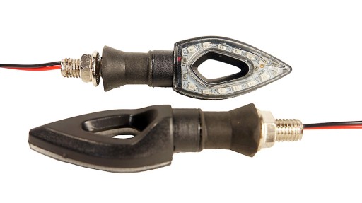 Uniwersalny kierunkowskaz LED SMD w kształcie grotu strzały z obudową z tworzywa w kolorze czarnym i przeźroczystym kloszem. Cena za parę - 2 szt.