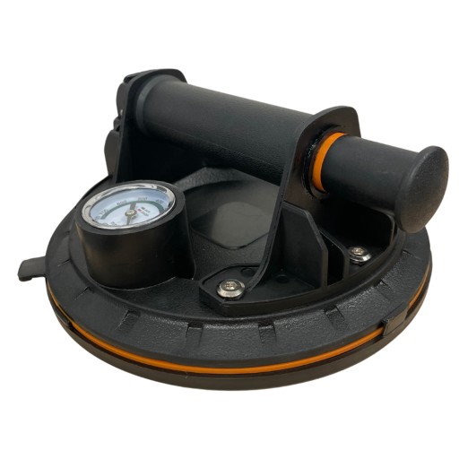 Wyposażona została w antypoślizgowy uchwyt, dzięki czemu chwyt jest mocniejszy i pewniejszy. MANOMETR - wbudowany wskaźnik mocy ssania z dokładnością odczytu do 20 mmHg (zakres pomiaru od 0 do 760 mmHg). Kiedy wskazówka manometru znajduje się na zielonym polu gwarantuje najmocniejszy i najpewniejszy chwyt oraz bezpieczną prace.