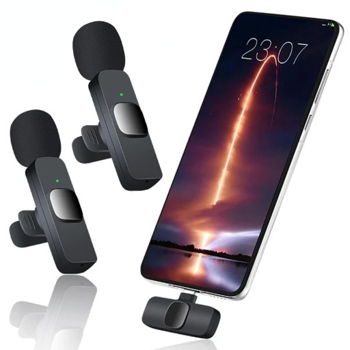 Mikrofon Bezprzewodowy Krawatowy 2 szt. - Odbiornik USB-C/Adapter do iPhone