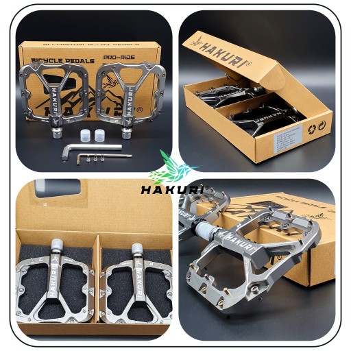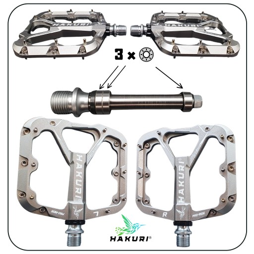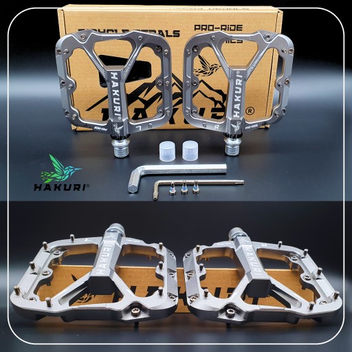 - Parę pedałów HAKURI PRO-RIDE DYNAMICS SILVER EDITION: Gotowe do montażu i rozpoczęcia przygody na szlaku.