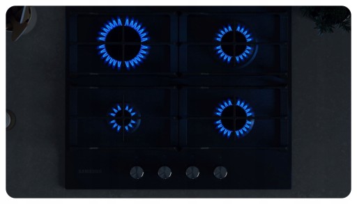 Płyta gazowa Samsung wyposażona jest w 4 palniki, które dostarczają imponującą moc 8,0 kW. Mając do dyspozycji tak dużą moc, możesz wygodnie przygotowywać potrawy wymagające na przykład szybkiego i intensywnego podsmażenia składników. Gotowanie wody, a także wszelkich potraw również jest o wiele szybsze. W zależności od tego, czy po prostu się spieszysz, czy też chcesz zachować pyszny smak jedzenia, z pewnością znajdziesz palnik spełniający twoje potrzeby.