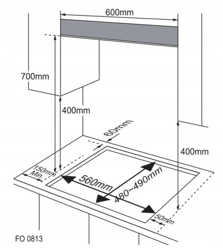 - Wymiary otworu (SxG) 560 x 480~490 mm