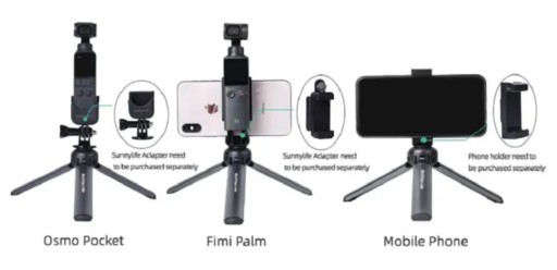 Uniwersalny statyw marki Sunnylife do aparatu / telefonu / DJI Osmo Pocket / 2 oraz wielu innych urządzeń z gwintem 1/4 cala to wysokiej jakości produkt, który sprawdzi się podczas nagrywania filmów czy fotografowania.