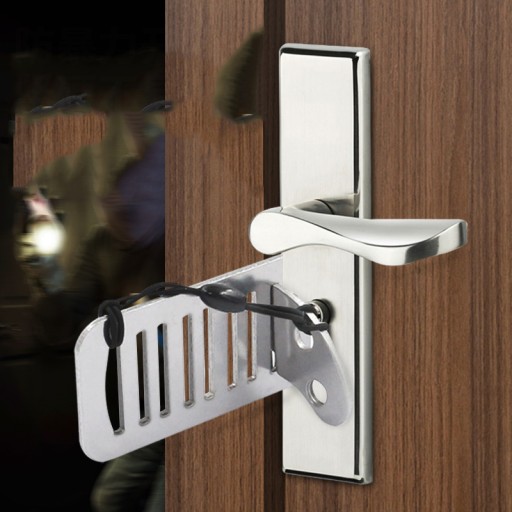 Łatwy w użyciu: wystarczy włożyć metalowy element w szczelinę zamka drzwi, zamknąć drzwi, a następnie włożyć małą blachę żelazną w szczelinę na metalowej płytce i wtedy nikt nie będzie mógł otworzyć drzwi z zewnątrz.