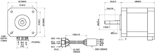 - Kąt kroku: 1,8 stopnia, 200 kroków/obrót
