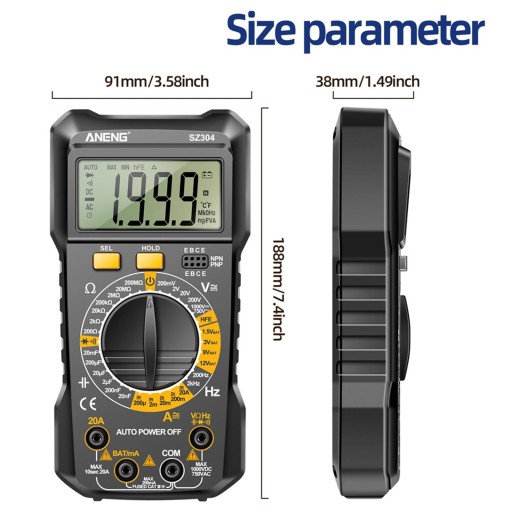 [Kieszonkowy rozmiar] Mały przenośny multimetr cyfrowy, wygodny do przenoszenia. 18,8 cm x 9,1 cm/7,40 cala x 3,58 cala. Łatwe do zabrania do miejsca pracy.
