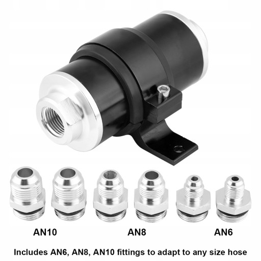 Zawiera złączki AN6, AN8, AN10 umożliwiające dopasowanie do węża o dowolnym rozmiarze.