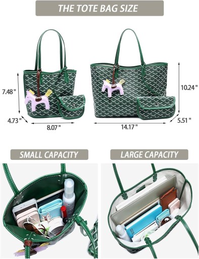 Perfektes Design: Dieses Tragetaschenset wurde von einem renommierten Designer sorgfältig gestaltet, um dem Wunsch der Damen nach Mode und Qualität zu entsprechen. Die Tragetasche hat ein stilvolles Punktemuster und die Buchstaben „T“, ergänzt durch einen niedlichen Pferdeanhänger, der die modische Gesamtattraktivität erhöht. Hinweis: Die Farbe des Pferdes ist zufällig.