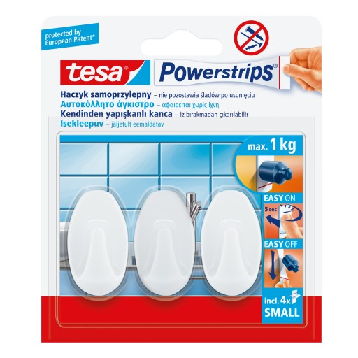 - Małe haczyki owalne tesa Powerstrips to naprawdę sprytne rozwiązanie.