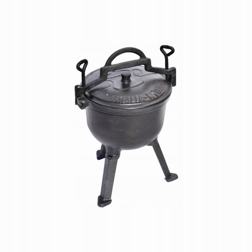 Kociołek wyposażony jest w solidną pokrywę z otworem, trzy stabilne nóżki oraz przykręcany uchwyt mocno dociskający pokrywę. Grube dno kociołka żeliwnego sprawia, że przygotowane dania wolną stygną. Żeliwo bardzo dobrze i równomiernie przewodzi ciepło.