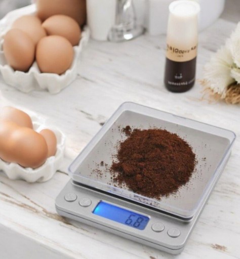Precyzyjna waga elektroniczna LCD z dwiema tackami o różnych głębokościach z tworzywa. która znajdzie zastosowanie w Twoim domu. kuchni, garażu czy firmie.