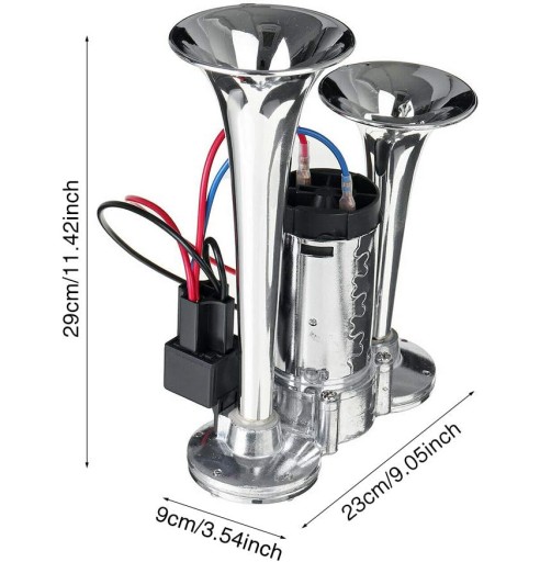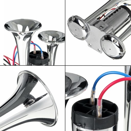 Materiał polimerowy w klaksonach ciężarówki, silny odporność na korozję, wodoodporny produkt, zapewnia maksymalną wytrzymałość i trwałość długotrwałego użycia. Z wypolerowaną sprężarką i błyszczącym metalowym rogiem rzucają uderzający wygląd na każdym zamontowanym pojazdie.