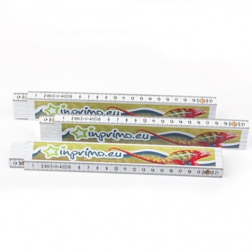 Nieodzownym elementem wyposażenia każdej skrzynki narzędziowej jest składana miara, co czyni przedmiot ten doskonałym narzędziem reklamy. W naszej ofercie znaleźć można wykonaną z tworzywa, o wiele bardziej trwałą niż drewniana, miarę składaną, na której wykonywany jest nadruk pełnokolorowy. Dzięki drukowi UV możemy nanieść na przedmiot ten wybrany nadruk z dowolną ilością kolorów, co przyda mu atrakcyjności i wyróżni go na tle klasycznych miar zdobionych jednokolorowym znakowaniem.