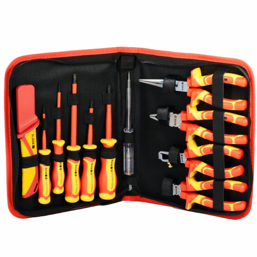Narzędzia izolowane wchodzące w skład zestawu są dedykowane do pracy pod napięciem, wykonane zostały z wysoko gatunkowej stali .