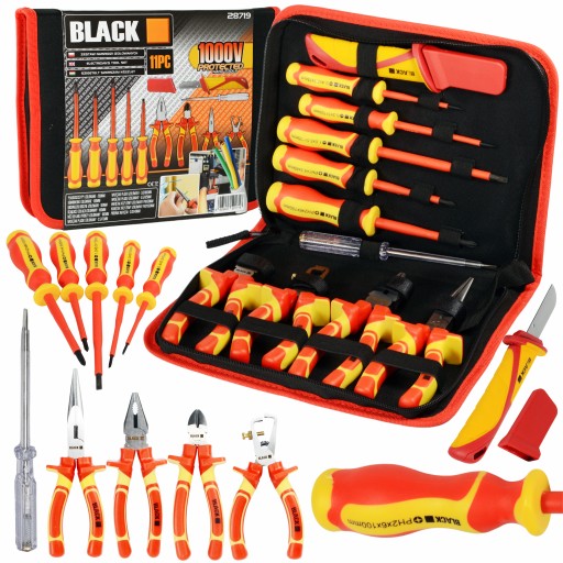 ZESTAW NARZĘDZI I WKRĘTAKÓW DLA ELEKTRYKA IZOLOWANE 11el MARKI BLACK (28719)