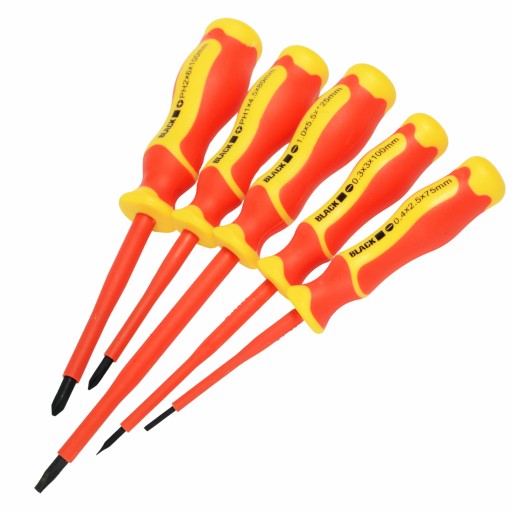 - Dwa rodzaje wkrętaków (krzyżak, płaski) w różnych rozmiarach. płaski (2,5x75mm, 3x100mm, 5,5x125mm) krzyżowy (PH1x80mm, PH2x100mm) razem 5szt.