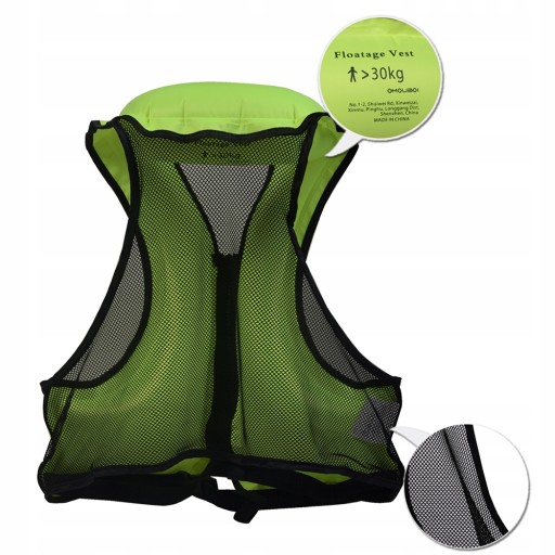 Lekka kamizelka ratunkowa o dużej wyporności, blisko brzegu.