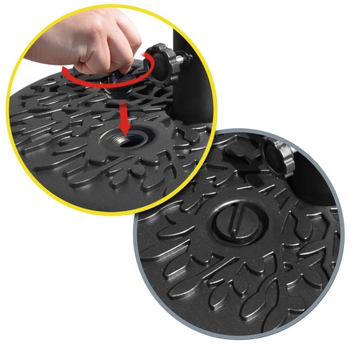 Na górze podstawy znajduje się odkręcany korek, który umożliwia łatwe napełnienie wodą.