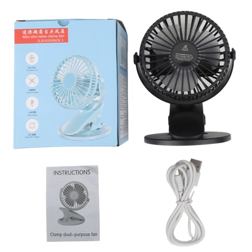 МАЛЕНЬКИЙ ПОРТАТИВНЫЙ ВЕНТИЛЯТОР С ЗАЖИМОМ, БЕСПРОВОДНОЙ USB ДЛЯ СТОЛА, ТЕЛЕЖКА, ЧЕРНЫЙ