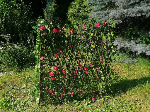OZDOBNEJ KRATKI OPLECIONEJ SZTUCZNYMI, PNĄCYMI RÓŻYCZKAMI - SUPER DEKORACJA.