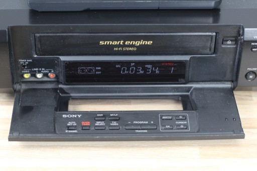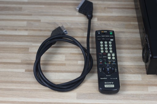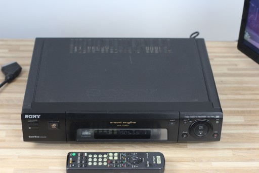 Magnetowid Sony SLV-F900 wraz z pilotem . Magnetowid w pełni sprawny , mechanizmy pracują płynnie . Wizualnie w bardzo ładnym stanie . Delikatna ryska na górnej obudowie ( zdjęcie ) . Sony cały w oryginale nie otwierany czy naprawiany . W zestawie oryginalny pilot oraz kabel Euro .