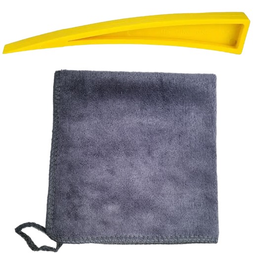 Klin rozpierak w zestawie ze ściereczką, może pomóc w wielu sytuacjach awaryjnych. Ściereczka z mikrofibry ma duże zastosowanie w motoryzacji jak i w pracach domowych.