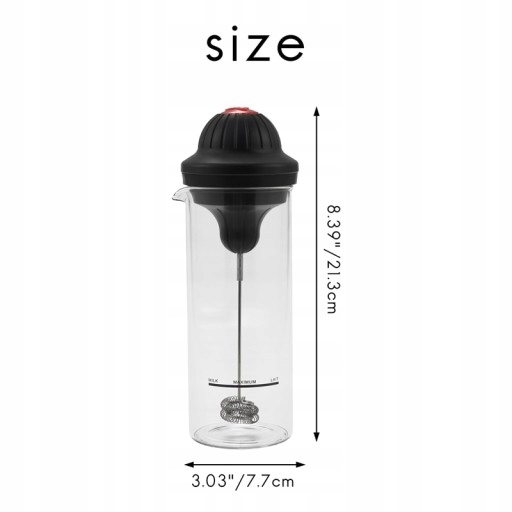 Spieniacz do mleka jest wykonany z wytrzymałego, żaroodpornego szkło borokrzemianowe. Ten szklany spieniacz do mleka jest łatwy do czyszczenia.