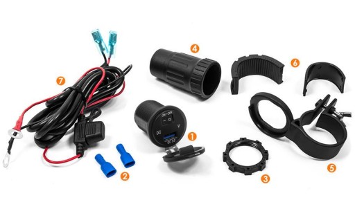 ✅ zestaw zawierający montowany do kierownicy adapter do gniazd motocyklowych i gniazdo motocyklowe MUS13.Port USB QC3.0 pozwala w szybki i bezpieczny sposób naładować dowolne urządzenie obsługujące standard Quick Charge. Gniazdo posiada woltomierz pokazujący napięcie prądu na wejściu do gniazda natomiast po wyłączeniu zapłonu napięcie w akumulatorze (w zależności od sposobu podłączenia do instalacji). Dodatkowo Gniazdo posiada wyłącznik pozwalający na odcięcie zasilania. Podświetlenie w kolorze niebieskim ułatwia korzystanie z gniazda w ciemności.
