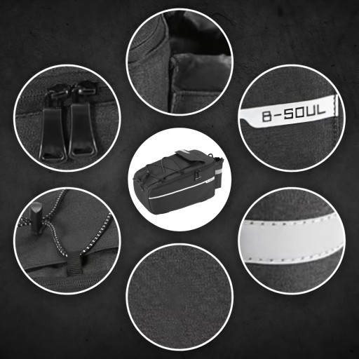 ✅BEZPIECZEŃSTWO JAZDY: Tył torby został obszyty odblaskową taśmą, która znacznie zwiększa widoczność rowerzysty podczas jazdy w warunkach słabego oświetlenia. To ważne dla bezpieczeństwa zarówno rowerzysty, jak i innych uczestników ruchu drogowego.
