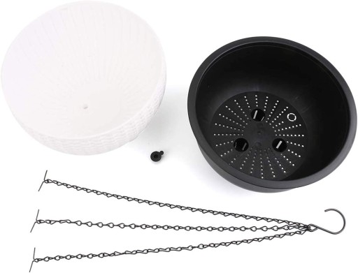 Doniczka Wisząca - Kwietnik Wiszący kosz zapewnia dużo miejsca na różne wiszące kwiaty czy inne rośliny.Można go zawiesić wszędzie - na elewacji, przy drzwiach, na tarasie, przy oknie i w wielu innych miejscach. Specyfikacja: - Stabilna, wytrzymała konstrukcja, - Wykonana z Tworzywa Sztucznego - Kolor: szary Zestaw: - osłonka - wkład - łańcuch + haczyk Wymiary: -średnica osłonki- 26 cm - wysokość osłonki- 16 cm -długość łańcucha- 44cm - długość całkowita- 60cm