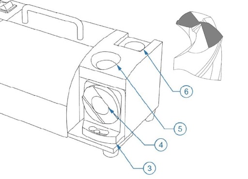 W gnieździe nr.4 możemy wykonać standardowe zaostrzenie kąta wierzchołkowego w zakresie od 90° do 140°. Zaostrzenie normalne stosowane jest do wszystkich zwykłych wierceń w stali, metalach kolorowych oraz tworzywach.