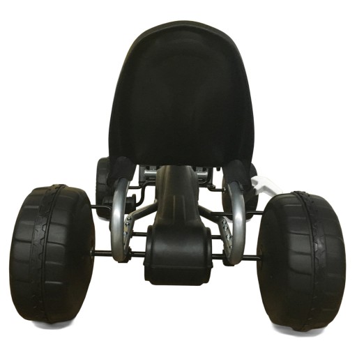 Przedstawiamy kolejny model gokarta o nazwie VIPER którym zachwyci się każdy mały fan motoryzacji. Gokart wykonany jest z lekkiej metalowej konstrukcji z plastikowymi dodatkami. Ponieważ ma 4 koła jest stabilniejszy od pojazdów trójkołowych. Viper wyposażony jest w duże plastikowe koła z kolorowymi felgami. Rama stalowa naszego gokarta dodatkowo została wzmocniona wspornikami. Natomiast zastosowany hamulec ręczny zapewnia bezpieczne hamowanie. Gokart VIPER ma sportowy fotel kierowcy z 2 stopniową regulacją odległości od kierownicy, gdzie każdy podróżnik będzie się czuł komfortowo i wygodnie. To właśnie dzięki regulacji fotela od kierownicy gokart będzie „rósł” razem z dzieckiem. Viper jest rekomendowany dla dzieci powyżej 3 lat. W miejscu tablicy rejestracyjnej jak w dorosłym pojeździe jest umieszczone logo Milly Mally z dwoma szachownicami po bokach co sprawia, że nasz sportowy gokart przeniesie dziecko w „świat formuły jeden” i poczuje się ono jak prawdziwy kierowca rajdowy.