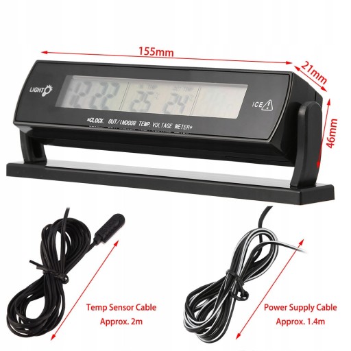 Jest to praktyczny zestaw samochodowy pomiarowy, układający się z woltomierzem i termometrem. Mały rozmiar i dodatkowy, z cyfrowym wyświetlaczem LCD, temperatura, wydany, zegar, sygnał, wszystko będzie widoczne w tym mini urządzeniu.