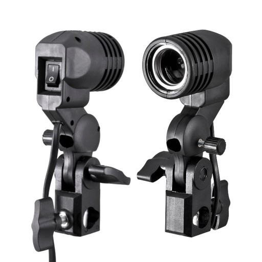 Oprawka przegubowa służy do mocowania żarówek, świetlówek i lampek błyskowych, z gwintem E27 na statywach oświetleniowych. Oprawka posiada standardowe mocowanie 5/8 cala - do statywów oświetleniowych.