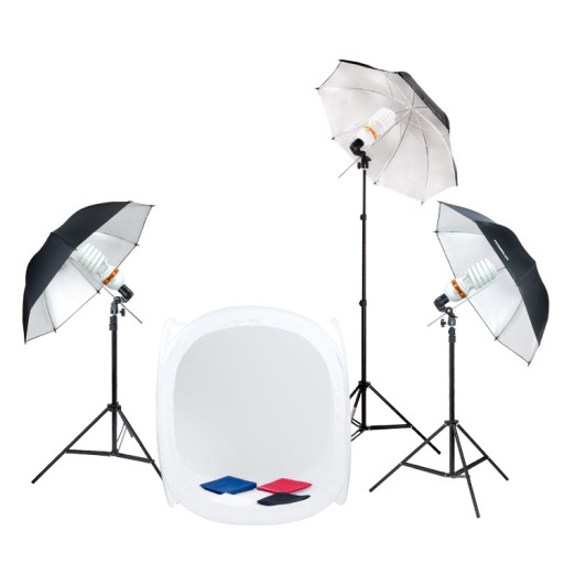 Przy pracy z tym zestawem nie ma potrzeby posiadania wysokiej klasy zaawansowanego aparatu. Namiot bezcieniowy oraz trzy źródła oświetlenia pozwolą na fotografowanie nawet najzwyklejszą lustrzanką i osiągnięcie w pełni zadowalającego efektu na zdjęciach.