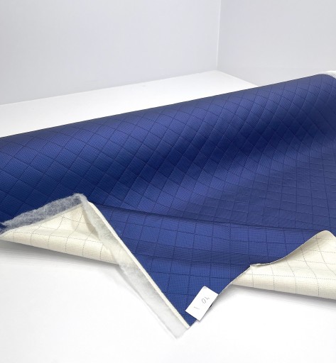 ⭐ Poniżej przykładowe zdjęcie z beli. Pod spodem widoczny ocieplacz. Tak prezentuje się Ekoskóra pikowana w całości.
