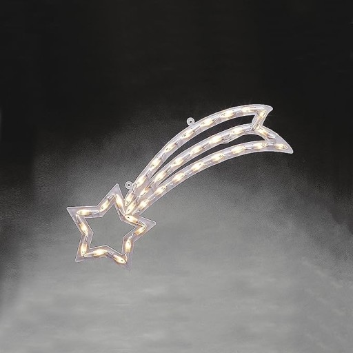 - Ta piękna sylwetka okienna LED przedstawia kometę, która dzięki 35 diodom o barwie ciepłej bieli wyczaruje w ciemności blask w oczach.