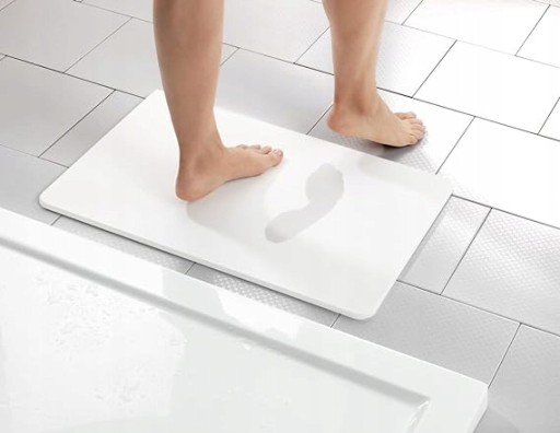 - Wysokiej jakości materiały: mata łazienkowa wykonana jest z naturalnej, trwałej ziemi okrzemkowej. Proszek z gumy okrzemkowej wewnątrz maty jest chłonny i ma ponadto wysokie właściwości dyfuzyjne.