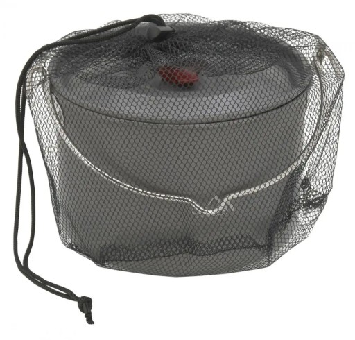 Garnek jest przechowywany w praktycznej torbie siatkowej.
