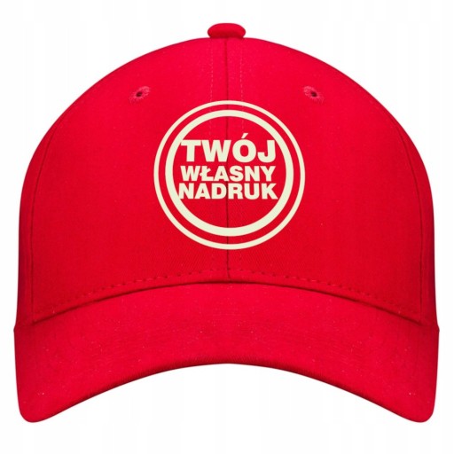 CZAPKA Z DASZKIEM METALOWE ZAPIĘCIE Z WŁASNYM HAFTOWANYM NAPISEM CZERWONA