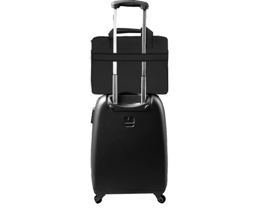 Torba posiada pasek mocujący ją na rączce walizki podróżnej. Dzięki temu rozwiązaniu torba jest bardzo wygodna i praktyczna w podróży (na zdjęciu walizka podróżna kabinowa).