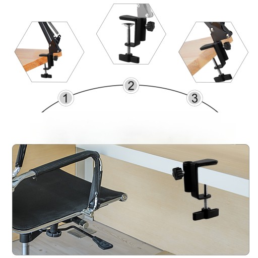 ✅Regulowany zacisk montażowy do stołu został zaprojektowany tak, aby bezpiecznie przymocować stojak mikrofonowy do blatu lub innej płaskiej powierzchni za pomocą śruby pozycjonującej.